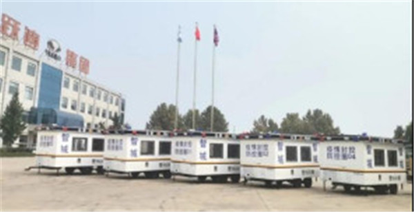 為進一步筑牢疫情防控圈,9月12日,京津冀地區采購的移動防疫工作站在躍迪集團順利發車,助力一線防疫人員開展體溫檢測、信息登記、巡邏執勤、建設防控卡點等工作。