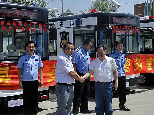 移動警務室宣化縣公安局接車儀式 2012年5月5日河北新宇宙電動車有限公司研發生產的躍迪牌移動警務室發往張家口市宣化縣公安局,圖為宣化縣公安局接車儀式。