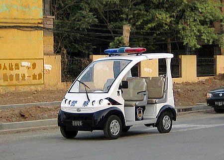 2012年5月4日河北新宇宙電動車研發(fā)生產(chǎn)的躍迪牌移動警務(wù)室、電動巡邏車發(fā)往石家莊裝備制造基地(欒城),圖為石家莊裝備制造基地接車儀式。