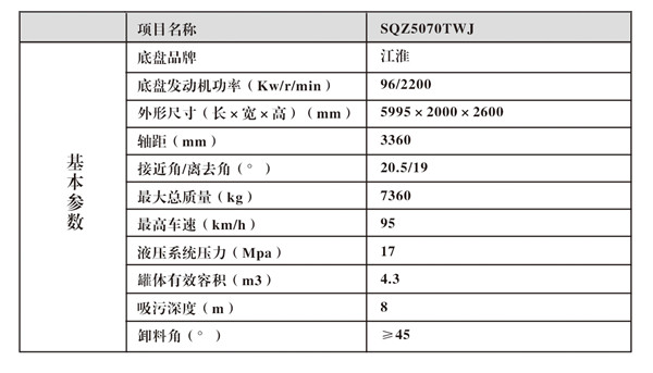 躍迪吸污車(SQZ5070TWJ)是利用真空負壓原理將糞便及液態污物吸入車載儲存容器,實現糞便收集的容器化,收集、中轉清理運輸污泥、污水減少二次污染。
