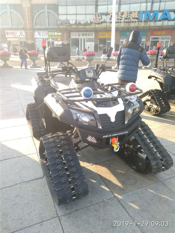 警用全地車型,該車簡單實用,越野性能好,具有多種用途,且不受道路條件的限制,使用履帶式結構,可以一年四季在冰雪路面、沙灘、沼澤、街面上行駛,適合執行各種警務任務,可以成功解決北方雪區冬季出行的難題,尤其適合雪地救援、森林巡防、管線巡查、邊防巡邏等方面的使用。