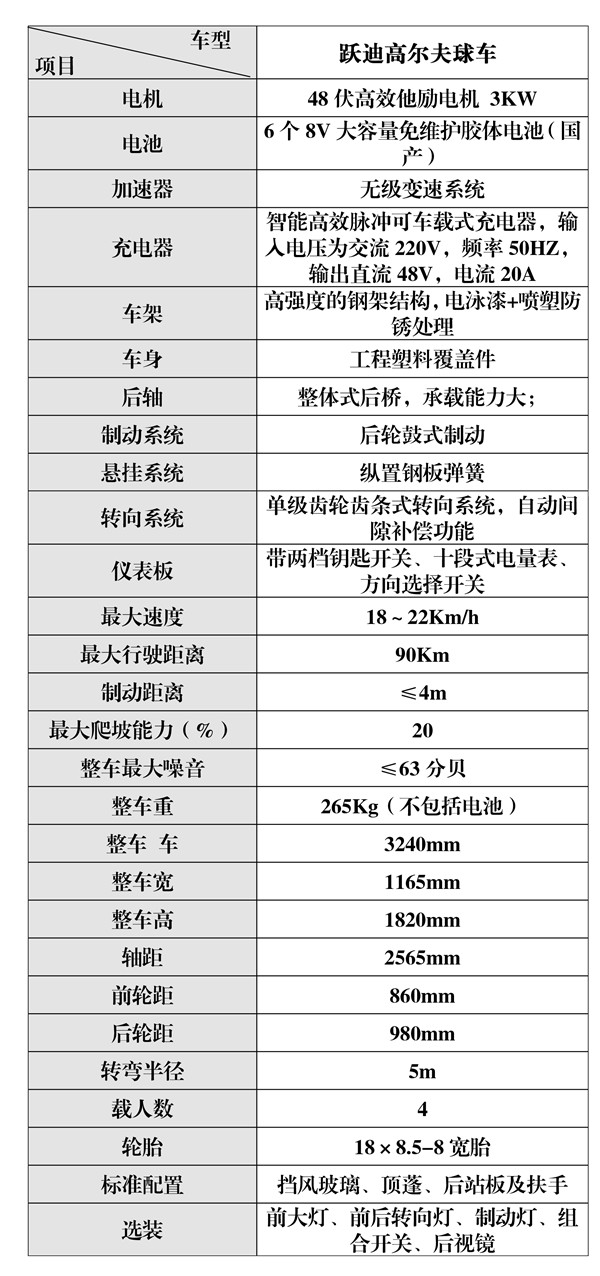 專門為高爾夫球場(chǎng)開發(fā)的場(chǎng)地用車。該車地盤低,上下方便,轉(zhuǎn)彎半徑小,操縱靈活,行駛平穩(wěn),整車載重性能優(yōu)越,行駛中平穩(wěn)顛簸受力小,駕乘舒適。