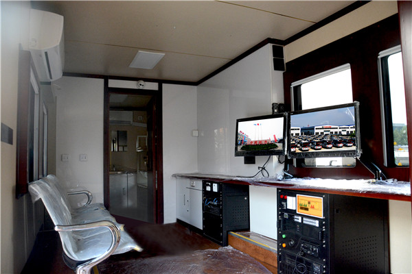 躍迪牽引式移動警務室是根據公安、特警系統特點和移動辦公指揮的需求,開發設計的能滿足一定人員工作并實現遠程監控、指揮調度功能的新型警務設備。配備警務辦公系統、警務通信系統、監控系統、圖傳系統、供電系統、照明系統及簡易生活設備,具有現場辦公指揮、應急通信、圖像4G傳輸、強聲廣播、惡劣環境執勤等功能,能滿足移動辦公、警務前移等需要。適用于大型會議、活動等現場警務辦公,可實現了對治安復雜場所、案件高發區域、大型活動現場、旅游景點等及治安盲區的動態管控。