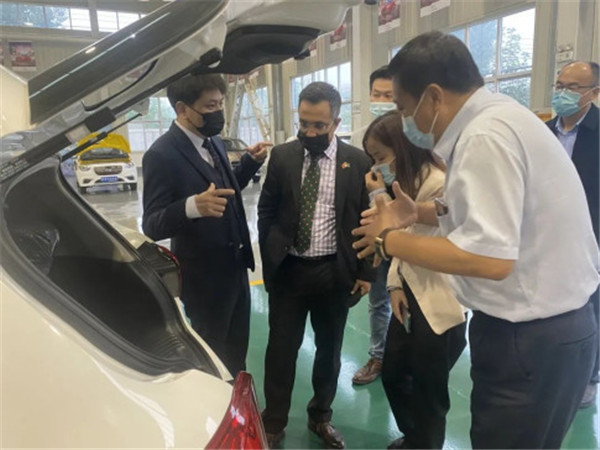 參觀完畢,雙方一起在集團會議室進行了座談,納祖明公使一行人對躍迪集團發(fā)展新能源汽車的實力表示了肯定。同時高度贊揚了躍迪集團在新能源汽車行業(yè)的發(fā)展成果,并表示對合作前景充滿期待。
